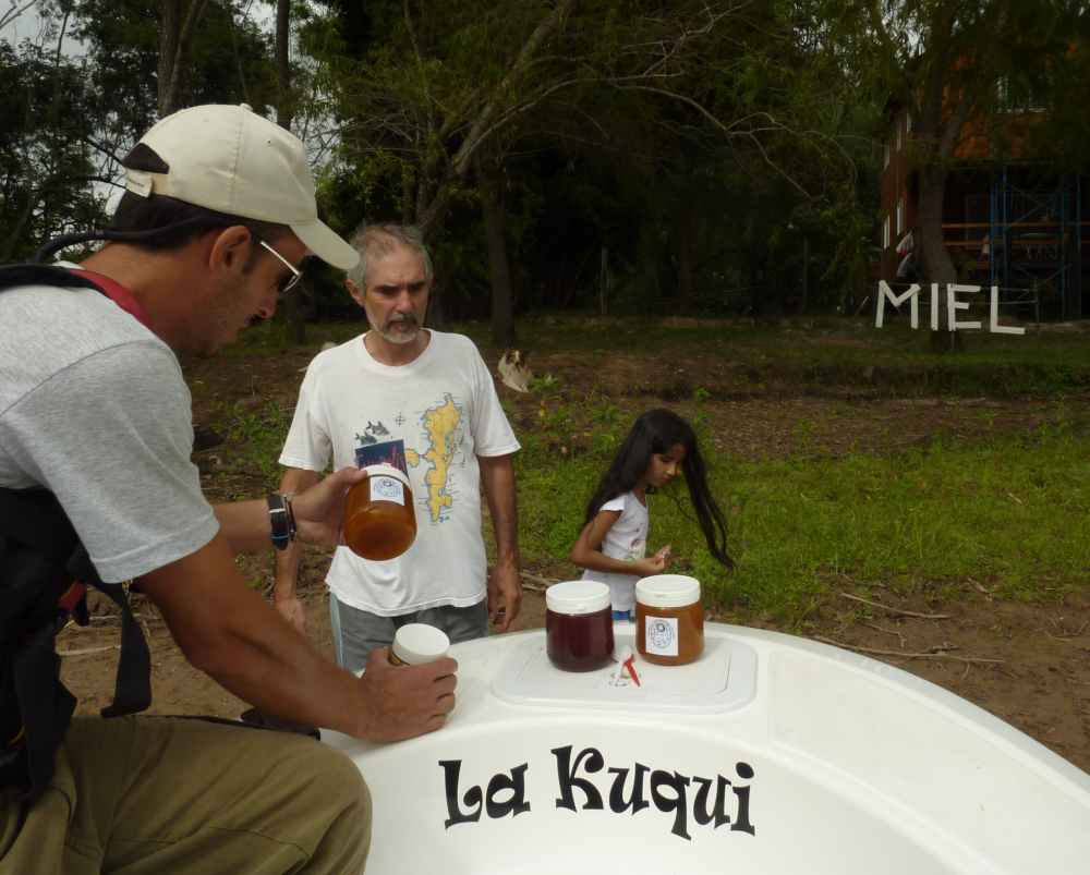 A few minutes later we saw a house with a sign that declared “Miel” (Honey) out front! “That’s the home of Luis Sainz,” we were informed by Sebastian, our guide, “He is the beekeeper who lives on the island, would you like to see if he is home?” Sebastian explained he often buys honey from Luis. Later, while sharing a Mate he told us he was happy we bought some honey because it meant in a small way his kayak business was helping the local economy.
