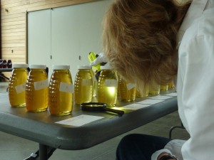 Honey Competition in the Sequoia Room at the Morton Arboretum in Lisle, Illinois, USA on October 7, 2010. Judged by Maggie Wachter of Senior Honey (on the right).
